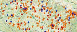 Mapa škol, zúčastněných v soutěži Bobřík informatiky 2021