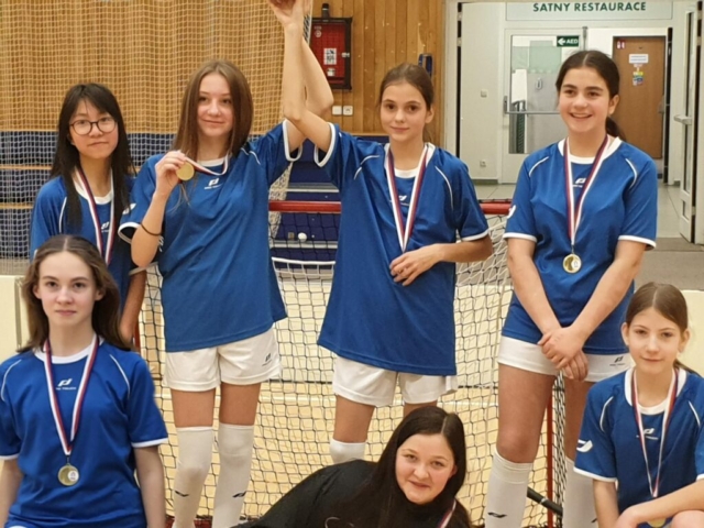 První místo v kraji, předvedl náš dívčí tým ze žáků šesté a sedmé třídy.