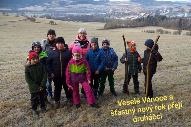 O úterním mrazivém dopoledni vyrazili druháčci nejprve na městský úřad popřát panu starostovi a jeho kolegyním krásné Vánoce. Přidali i básničku a koledu, a za to si každý odnesl něco dobrého „na zub“. Pak se vydali k lesu ke střelnici nadělit dobroty lesním zvířátkům. Odměnou jim za to byl krásný výhled na Strážov i na vzdálené šumavské kopce.